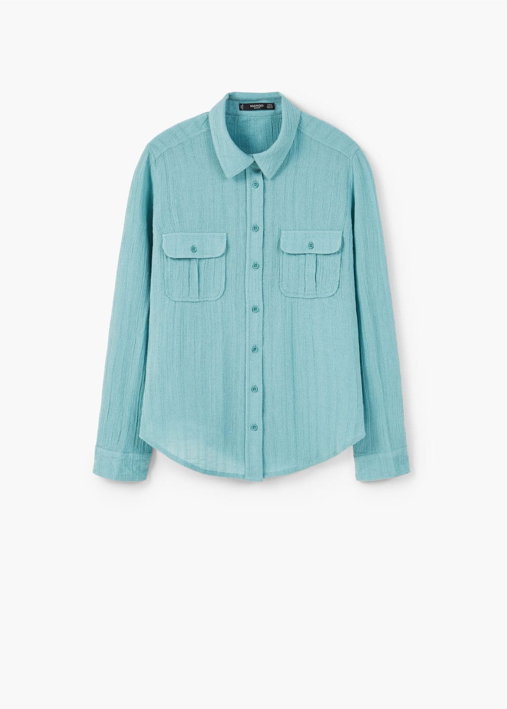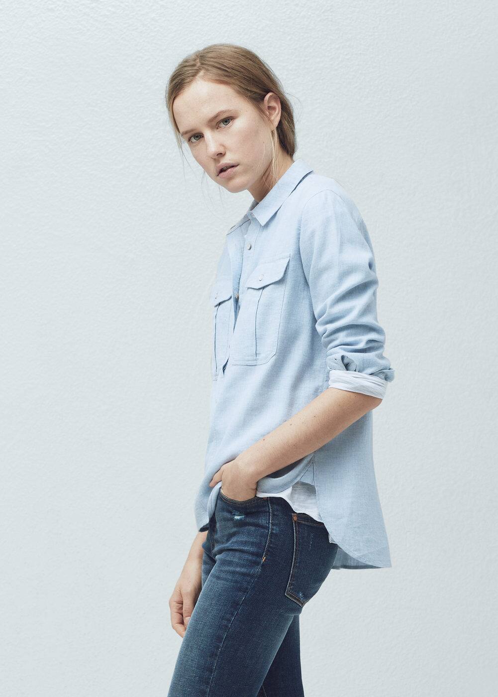 The last shirt is thicker fabric, but it’s still perfect for warm days as well. The pale blue color goes on with everything so I’m sure it will not be an issue to pair it with almost anything I have in my wardrobe. A nice detail is the vintage buttons.